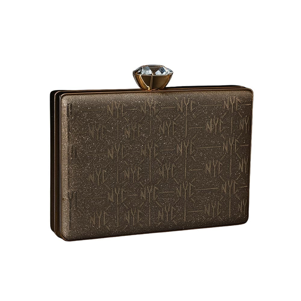 This premium box clutch features a textured golden finish with a subtle pattern that enhances its sophisticated appeal. The crystal-style top clasp adds a statement touch while ensuring secure closure. Its compact yet spacious interior allows you to carry essentials comfortably, making it an ideal accessory for special occasions.